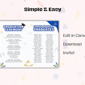 2025 Graduation Program Template, Editable 2025 Ceremony Card, Class of ...