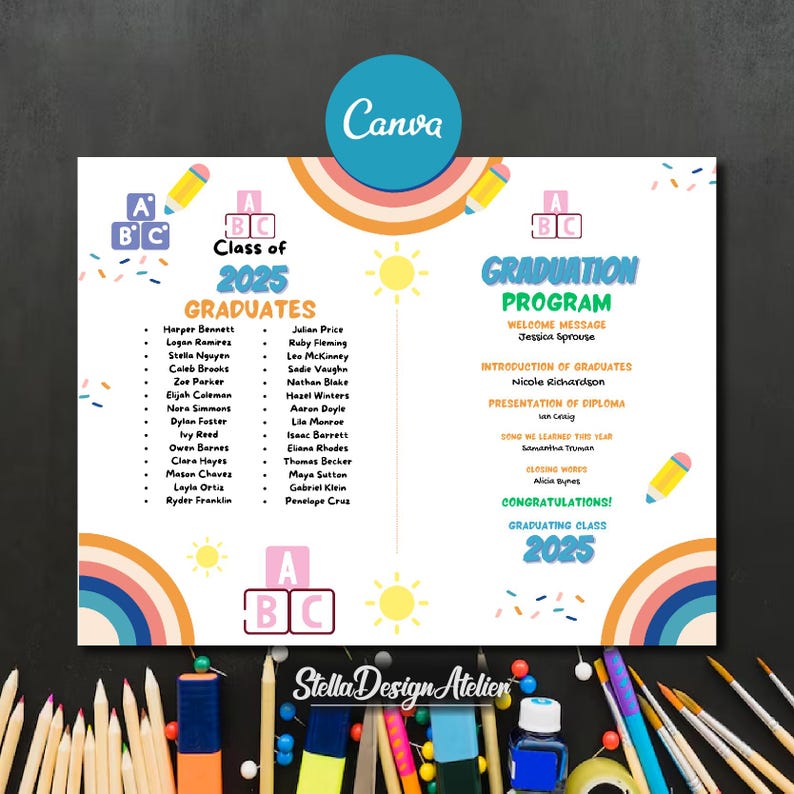 Preschool Graduation Program Template: Class of 2025, Editable Canva ...