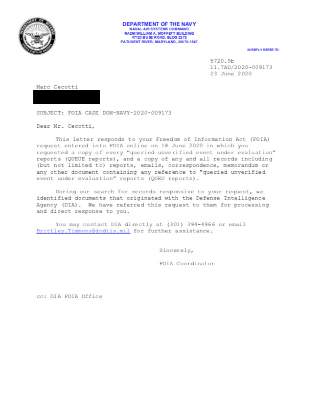 Unidentified Anomalous Phenomena - scientific research: AATIP FOIA ...
