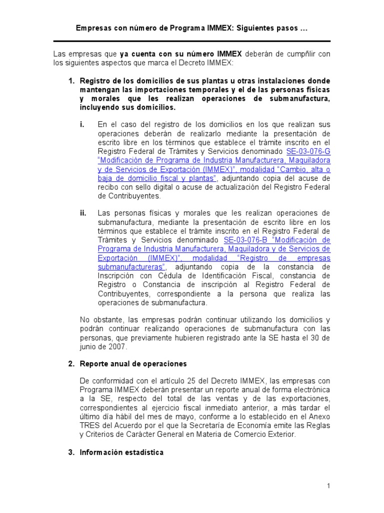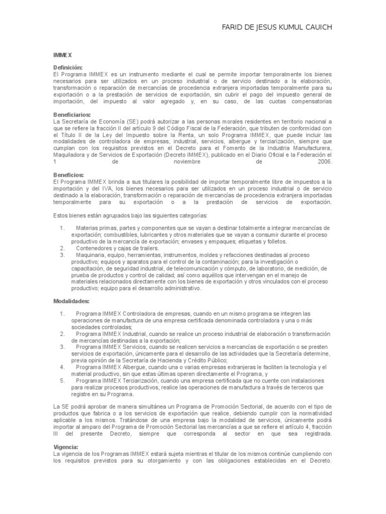 Programa IMMEX: Beneficios y Vigencia | PDF | Tratado de Libre Comercio ...