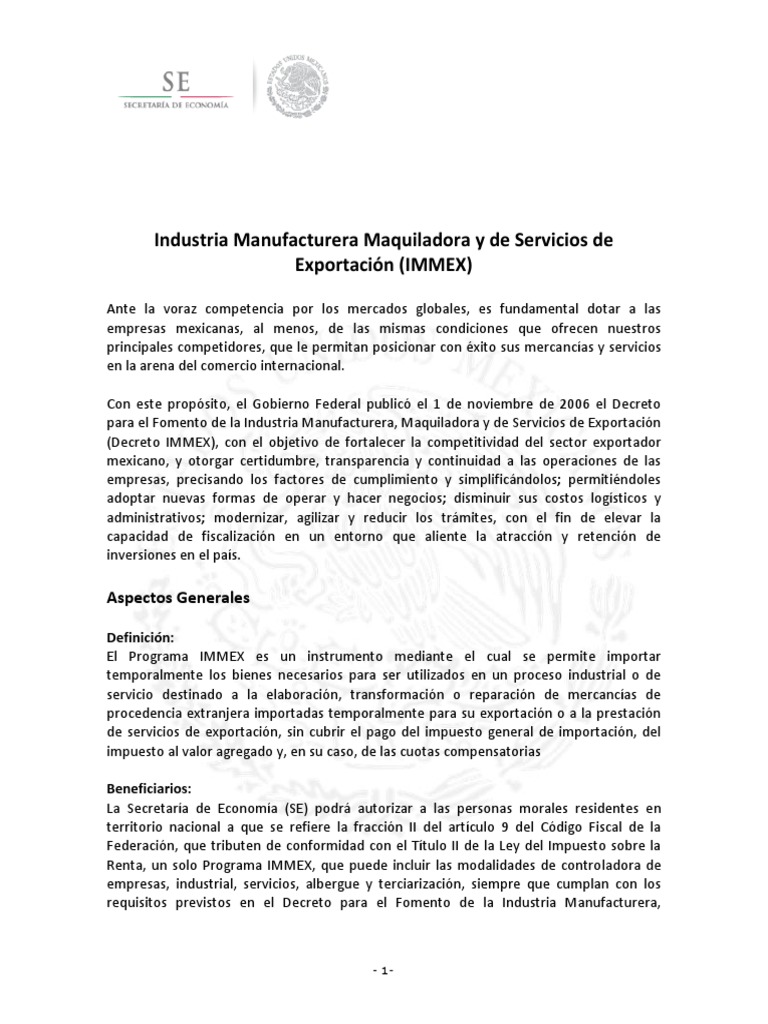 Programa IMMEX: Beneficios y Requisitos | PDF | Exportaciones | El ...