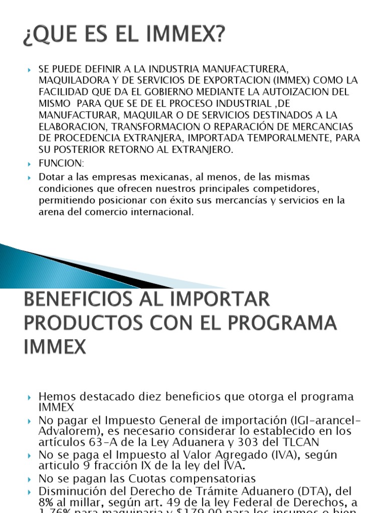 Programa IMMEX: Beneficios y Trámites | PDF | Arancel | Tratado de ...