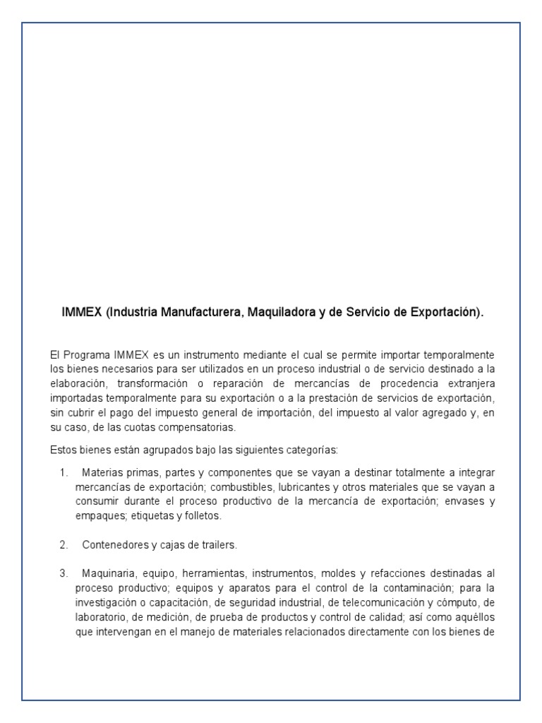 Programa IMMEX: Exportación y Beneficios | PDF | Exportaciones ...