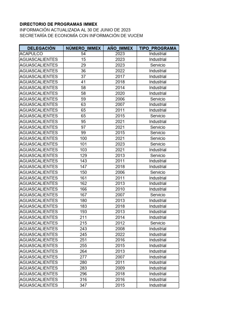 Directorio Programas IMMEX 2023 | PDF