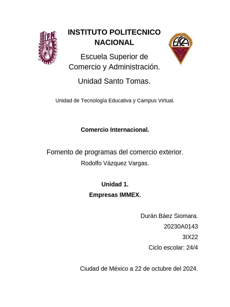 2.-TareaU1-Act2 - Programa IMMEX | PDF | Exportaciones | Economias