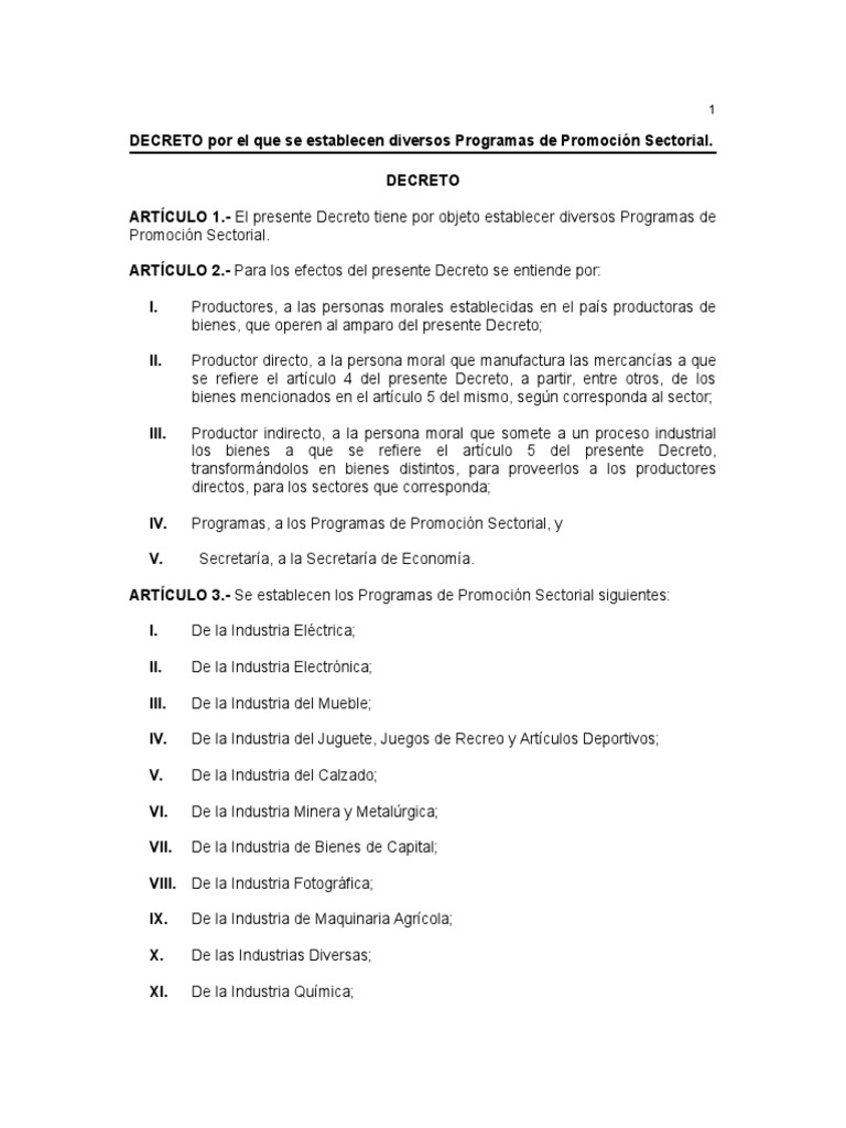 DECRETO Por El Que Se Establecen Diversos Programas de Promoción ...