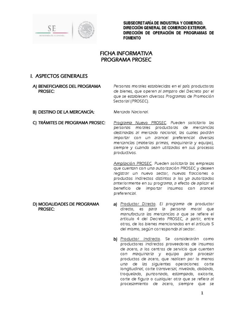 Ficha Informativa Programa PROSEC | PDF | Impuestos | Industrias