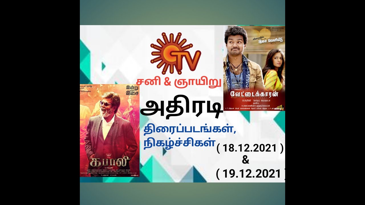Sun TV Saturday & Sunday Entertainment Movies, programs | Television ...