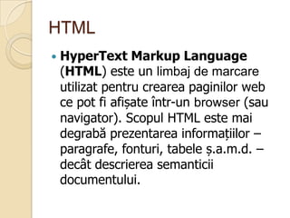 Ce este HTML Html sau HyperText Markup Language este unul dintre cele ...