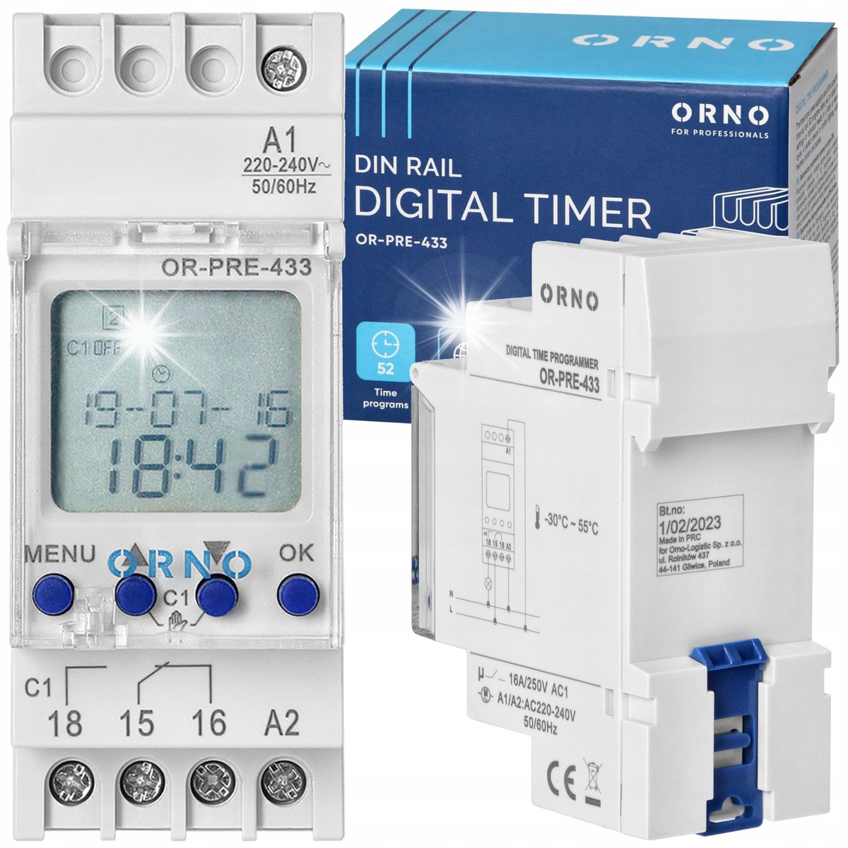 PROGRAMATOR WYŁĄCZNIK CZASOWY NA SZYNĘ OR-PRE-433 CYFROWY TYGODNIOWY ...