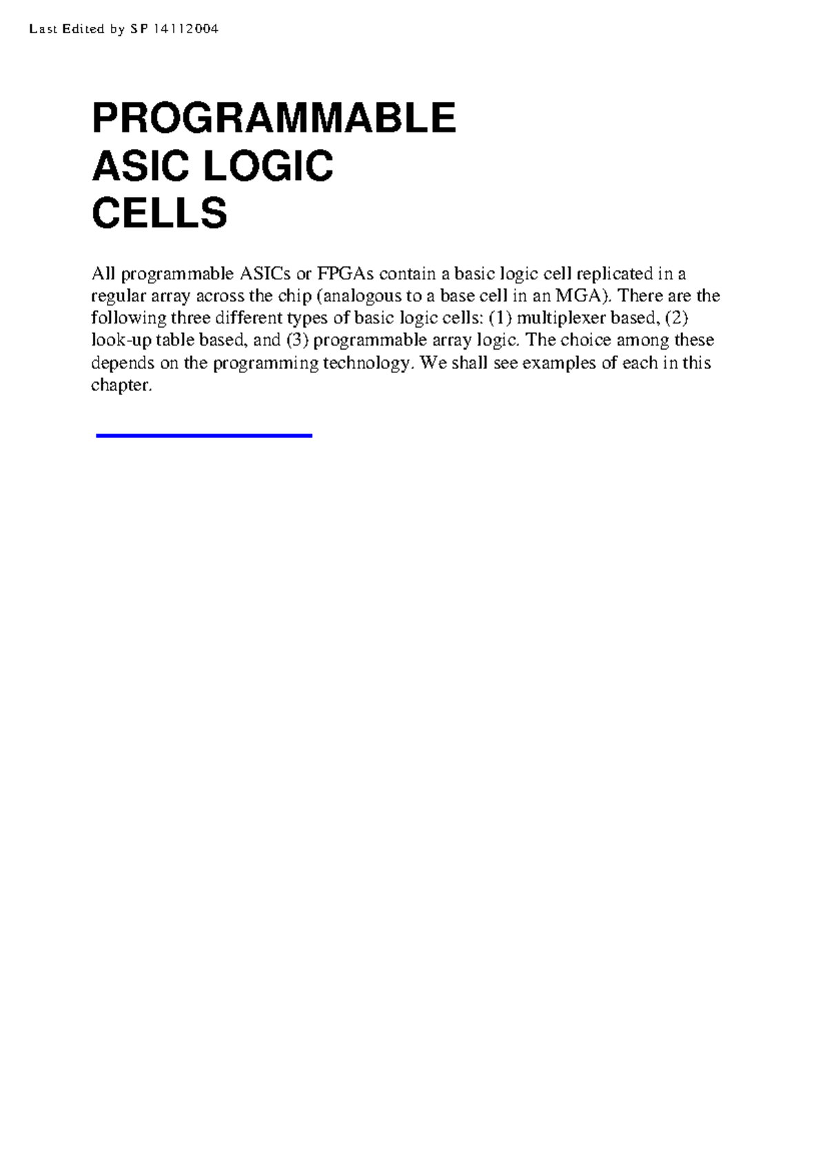 Programmable ASIC Logic Cells Overview - SP 1411 2004 Notes - Studocu