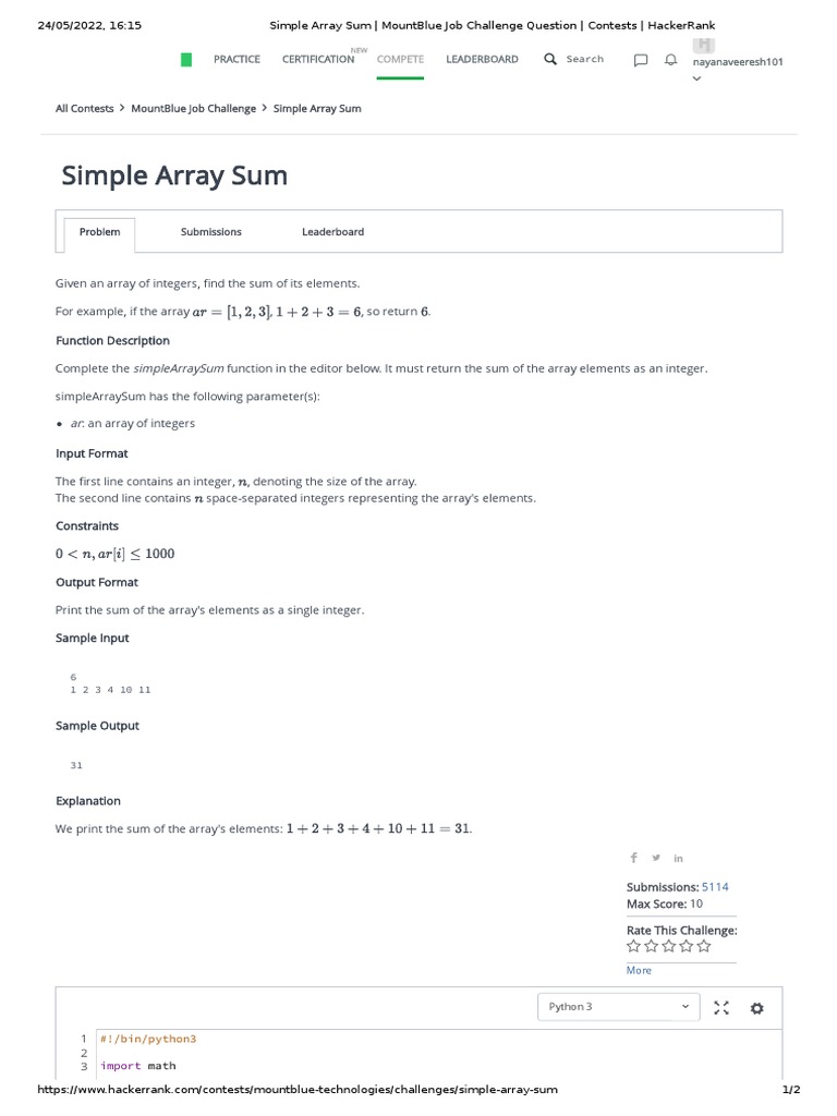 6. Simple Array Sum | HackerRank | Coding | Competitive Programming ...