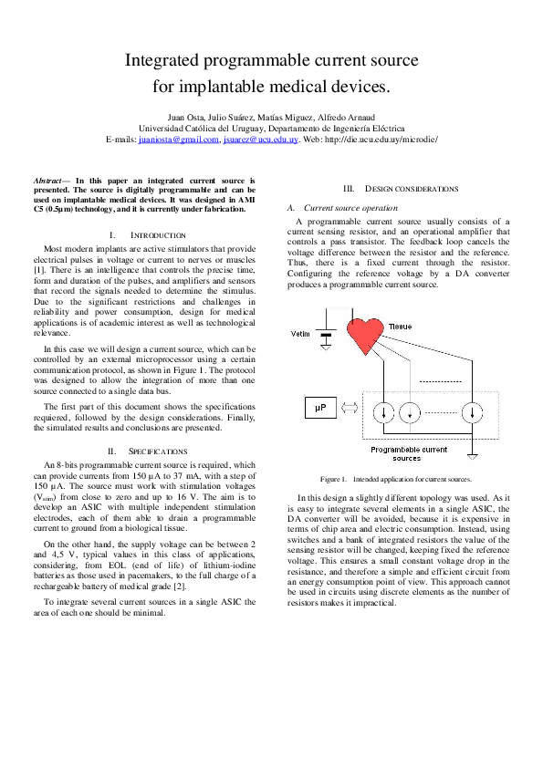 (PDF) Integrated Programmable Current Source for Implantable Medical ...