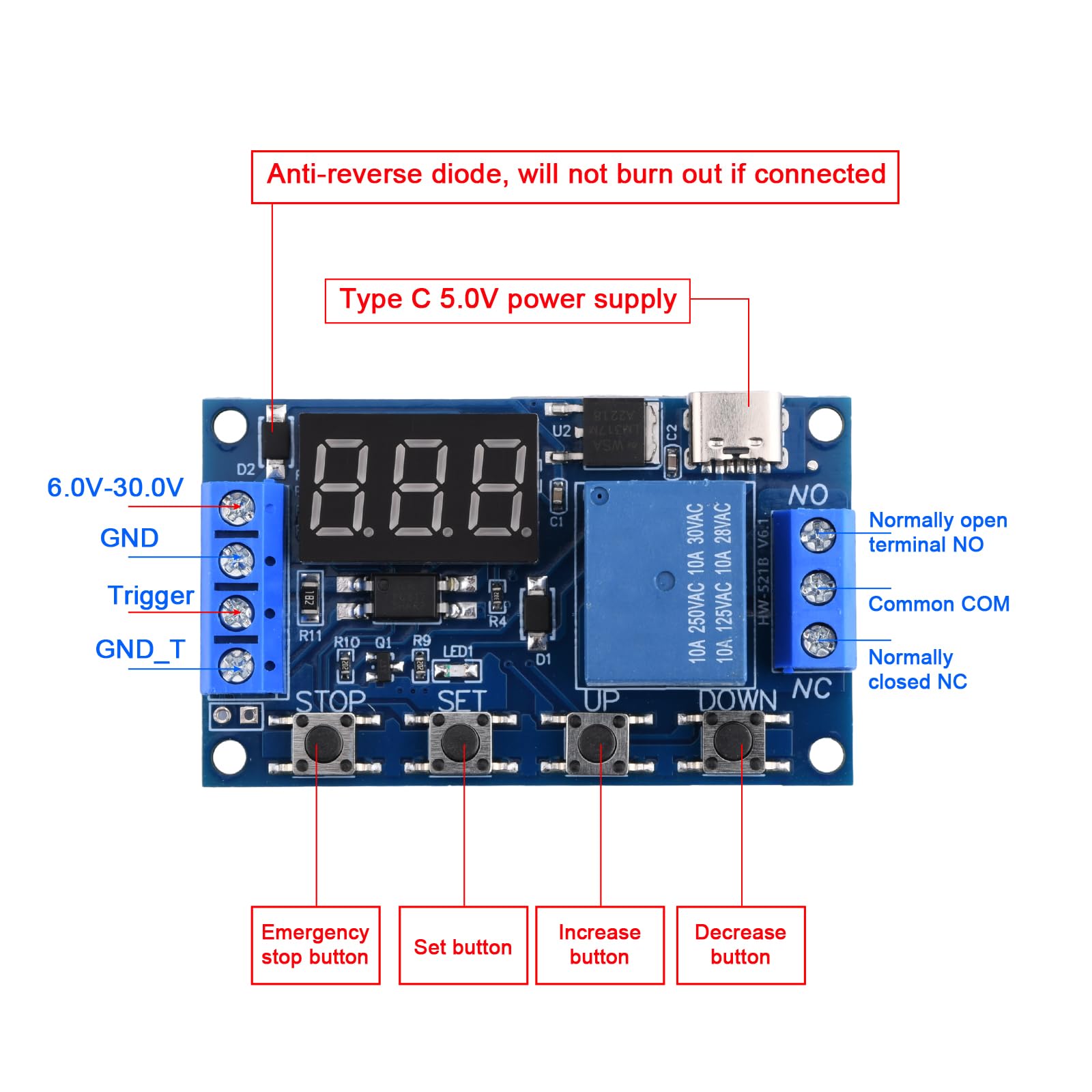 DC 6-30V LED Digital Time Delay Relay Module Programmable Timer Relay ...