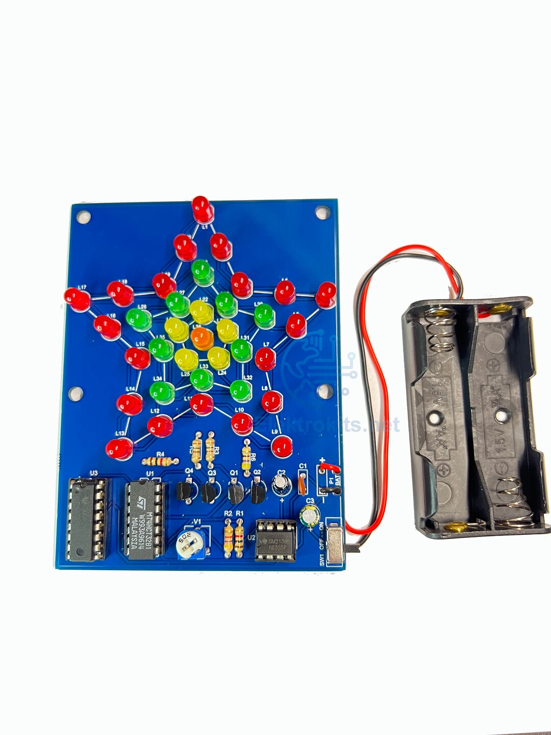 PCB Flashing Star with 3mm LEDs and 1.5v battery - Elektrokits.net