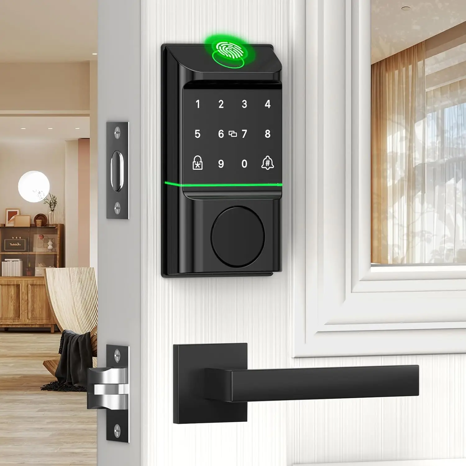 Keyless Entry Door Lock Deadbolt with Handle Set - SMONET Fingerprint ...