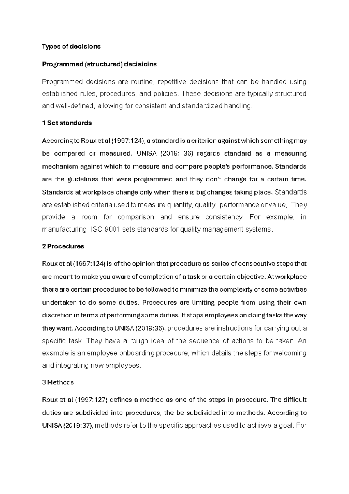 Planning 12 - Study note - TYPES OF DECISION Programmed decisions and ...