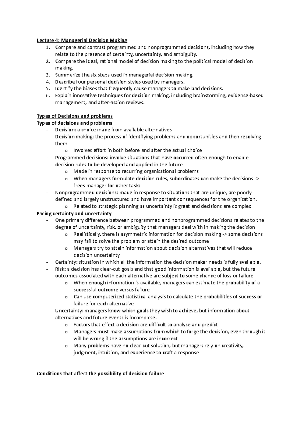 Lecture 4- Managerial Decision Making - Compare and contrast programmed ...