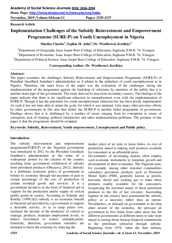 (PDF) THE SUBSIDY RE-INVESTMENT AND EMPOWERMENT PROGRAMME (SURE-P) AS A ...