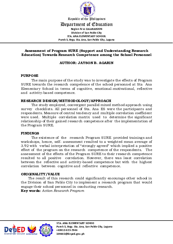 (PDF) Assessment of Program SURE (Support and Understanding Research ...