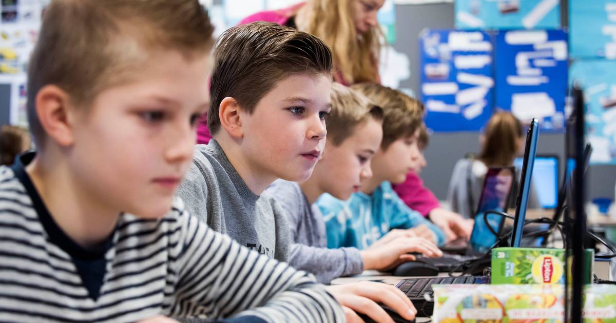 Kinderen leren programmeren op de computer op basisschool in Harmelen ...