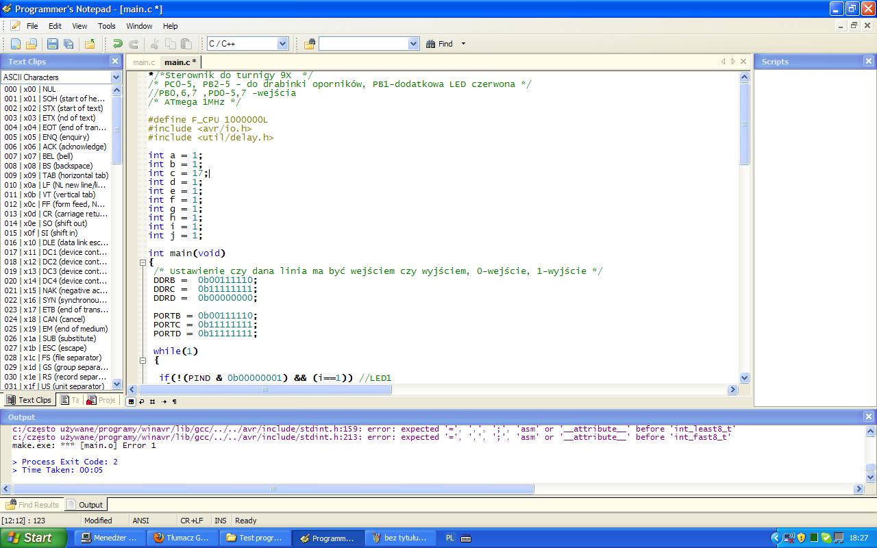 Programmers Notepad [WinAVR] - niestabilna kompilacja na jednym z ...