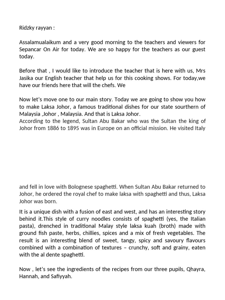 Text For The Cooking Programmes 2024 | PDF | Foods | Cuisine