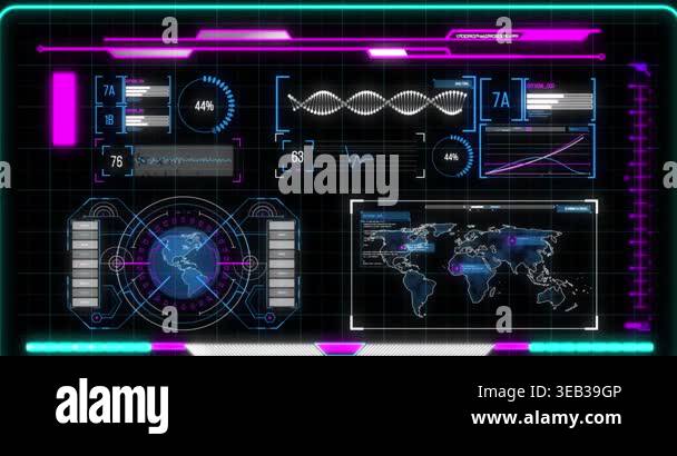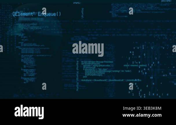 Animation of data processing over black background. programming, data ...