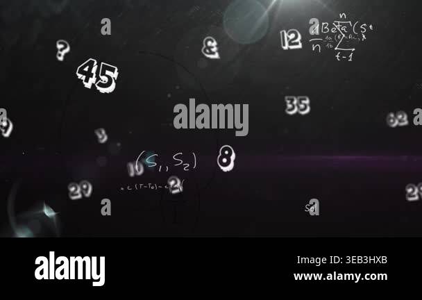 Animation of mathematical equations and formulas floating against ...