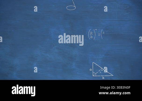 Animation of mathematical equations and diagrams floating against blue ...