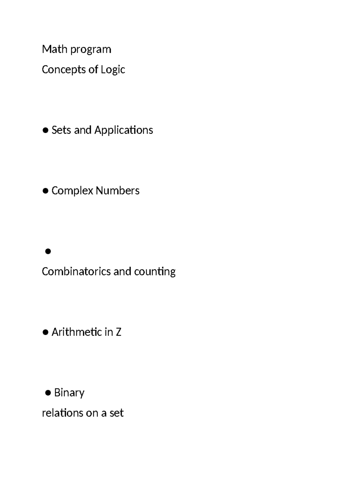 Math program - fgchncfvjh - Math program Concepts of Logic Sets and ...