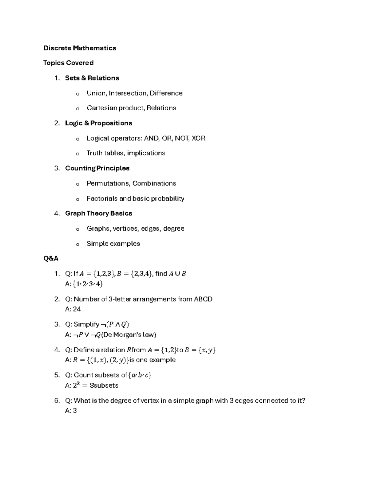Discrete Mathematics Topics Overview and Key Concepts - Studocu