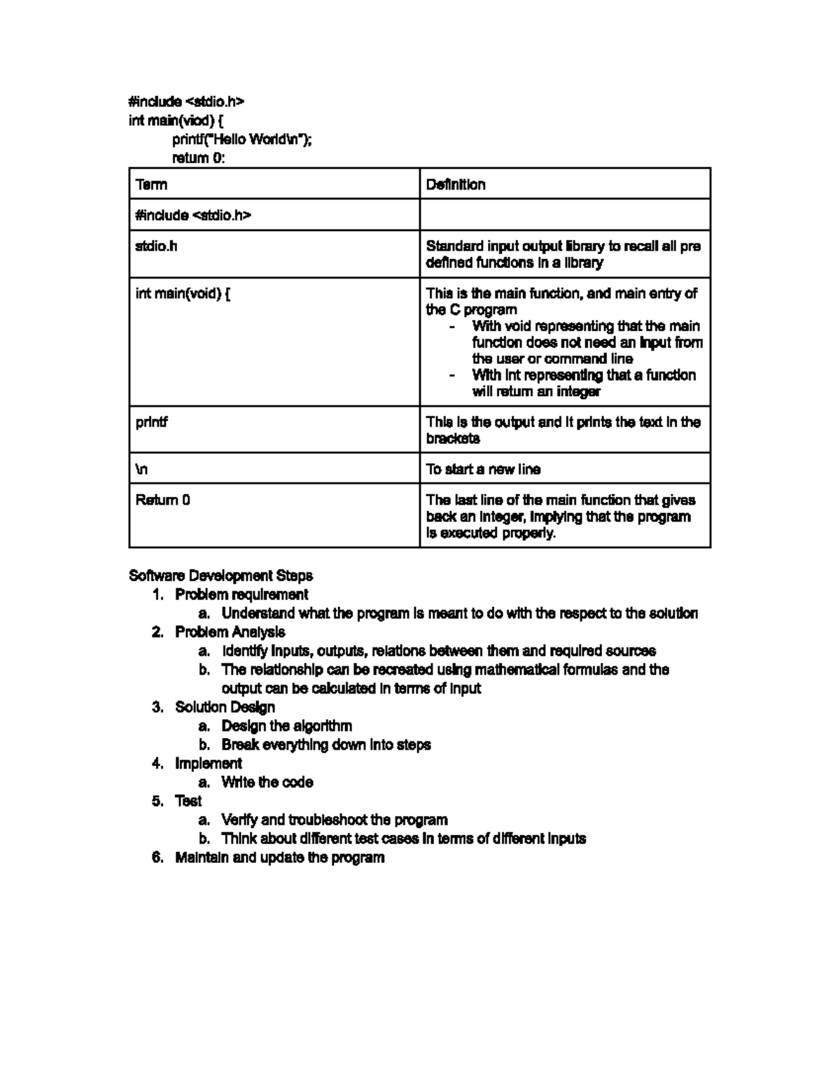 C Programming (D): Key Concepts and Software Development Steps - Studocu