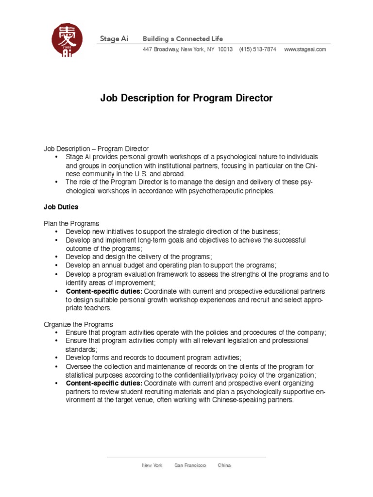 Program Director Job Description | PDF | Program Evaluation | Personal ...