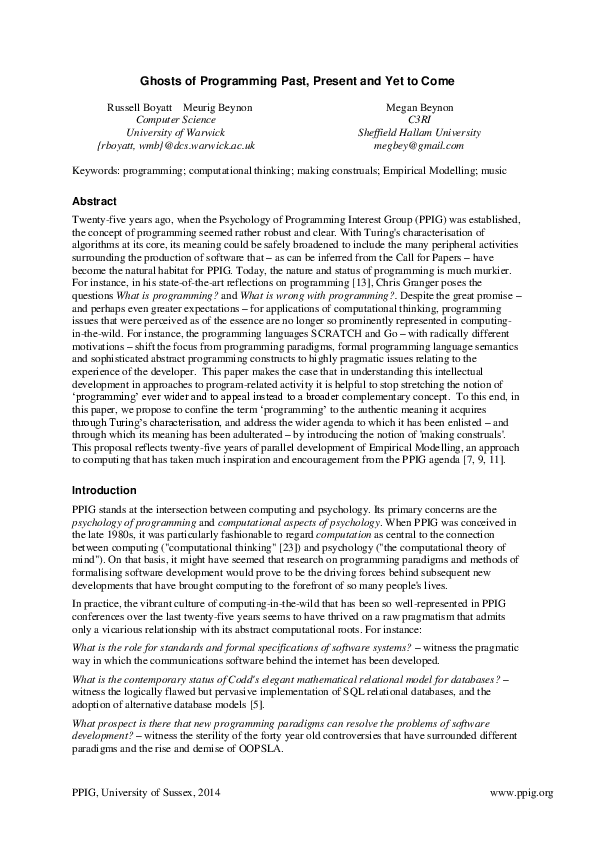(PDF) Ghosts of Programming Past, Present and Yet to Come