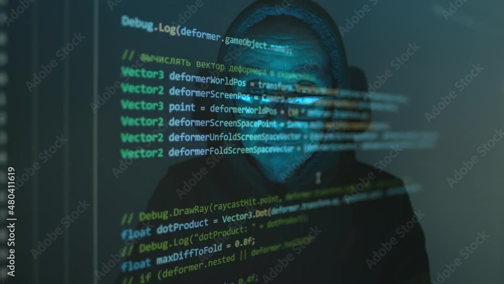 Portrait Of Software Developer Hacker Working On Computer Projected ...