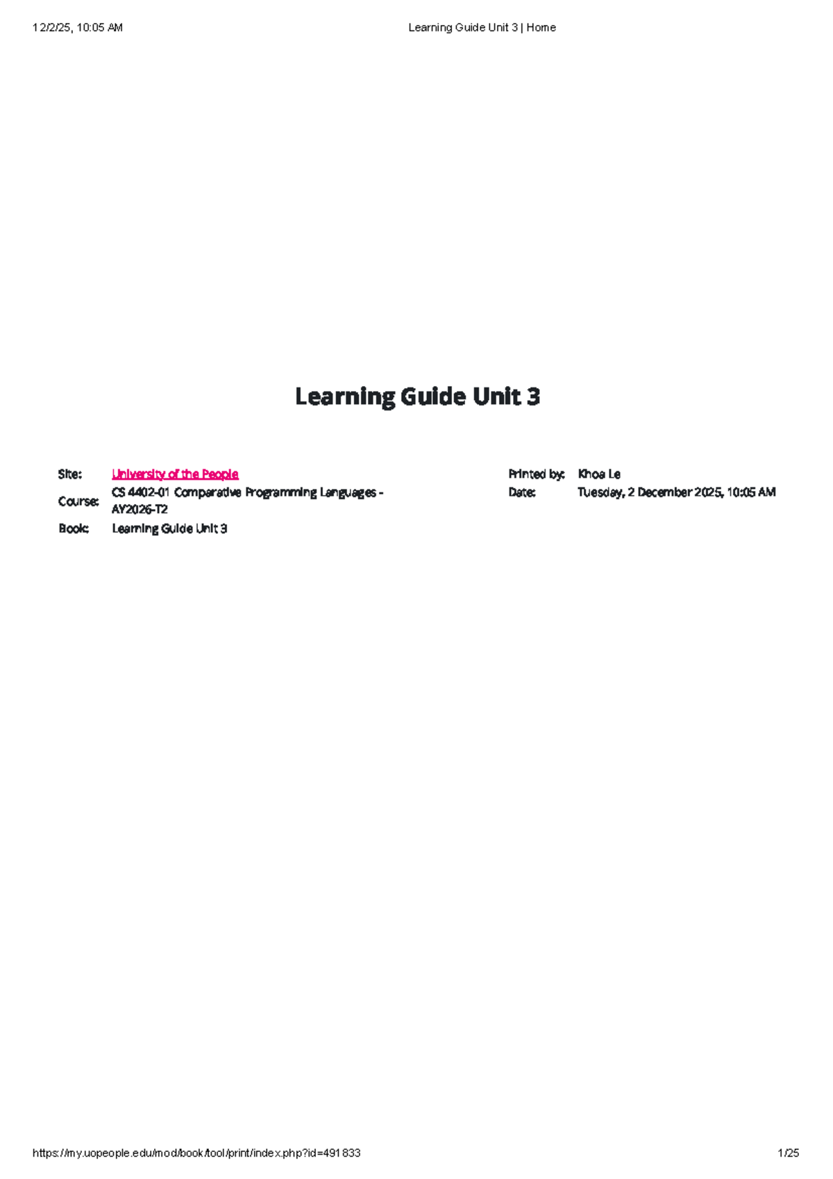 CS Comparative Programming Languages: Unit 3 Learning Guide - Studocu