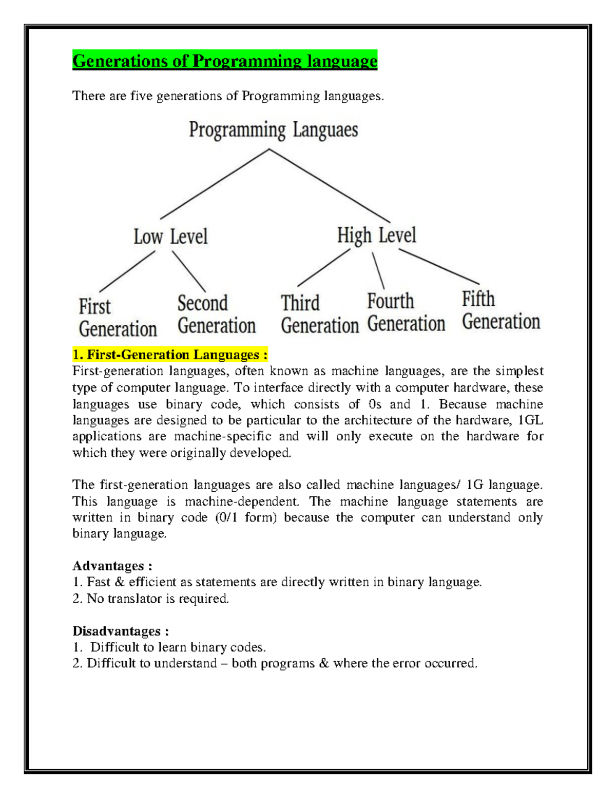 Generations of Programming Languages: An Overview of 1GL to 5GL - Studocu