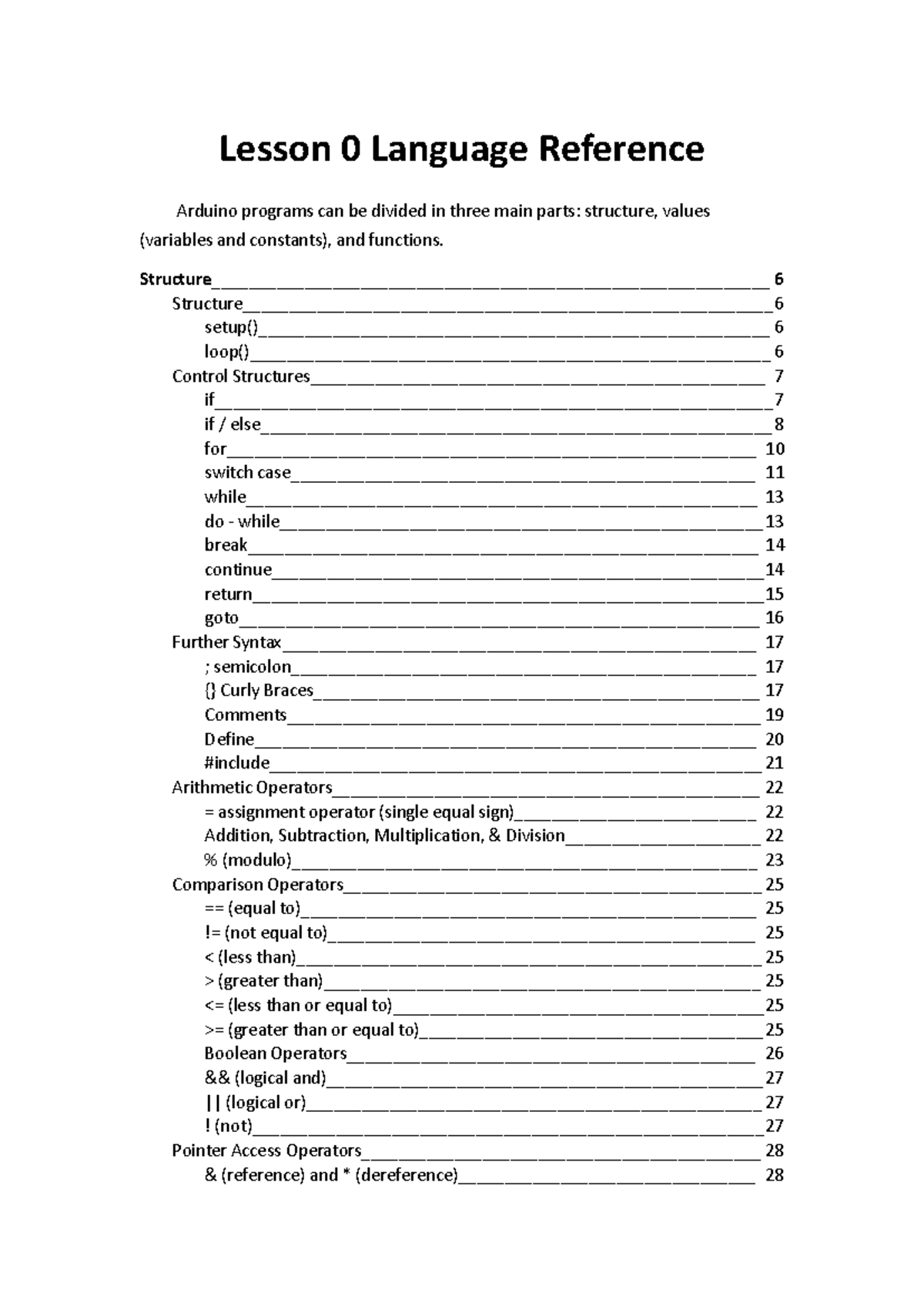 Lesson 0: Language Reference for Arduino Programming - Studocu