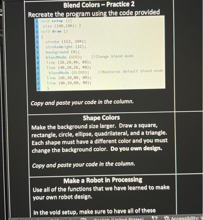 Solved Processing Programming Lab 2 - Colors and Robot | Chegg.com