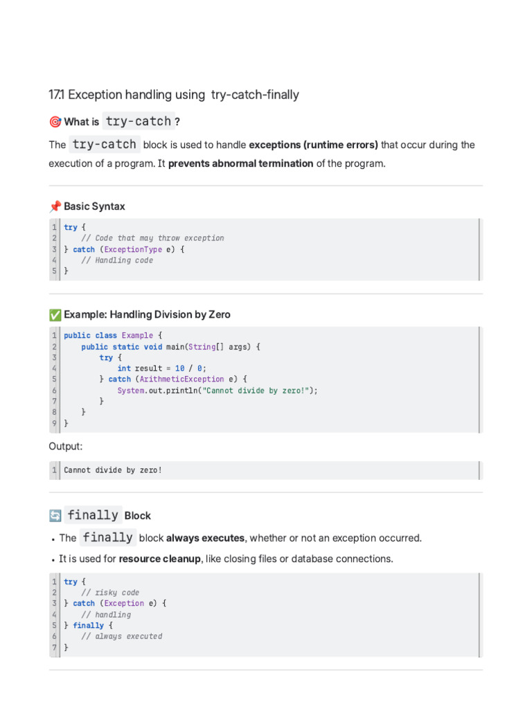 17.1 Exception Handling Using Try-Catch-Finally | PDF | Programming ...