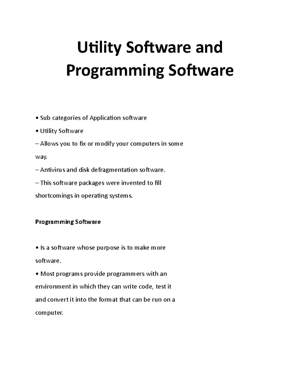 Utility Software and Programming Software - Utility Software and ...