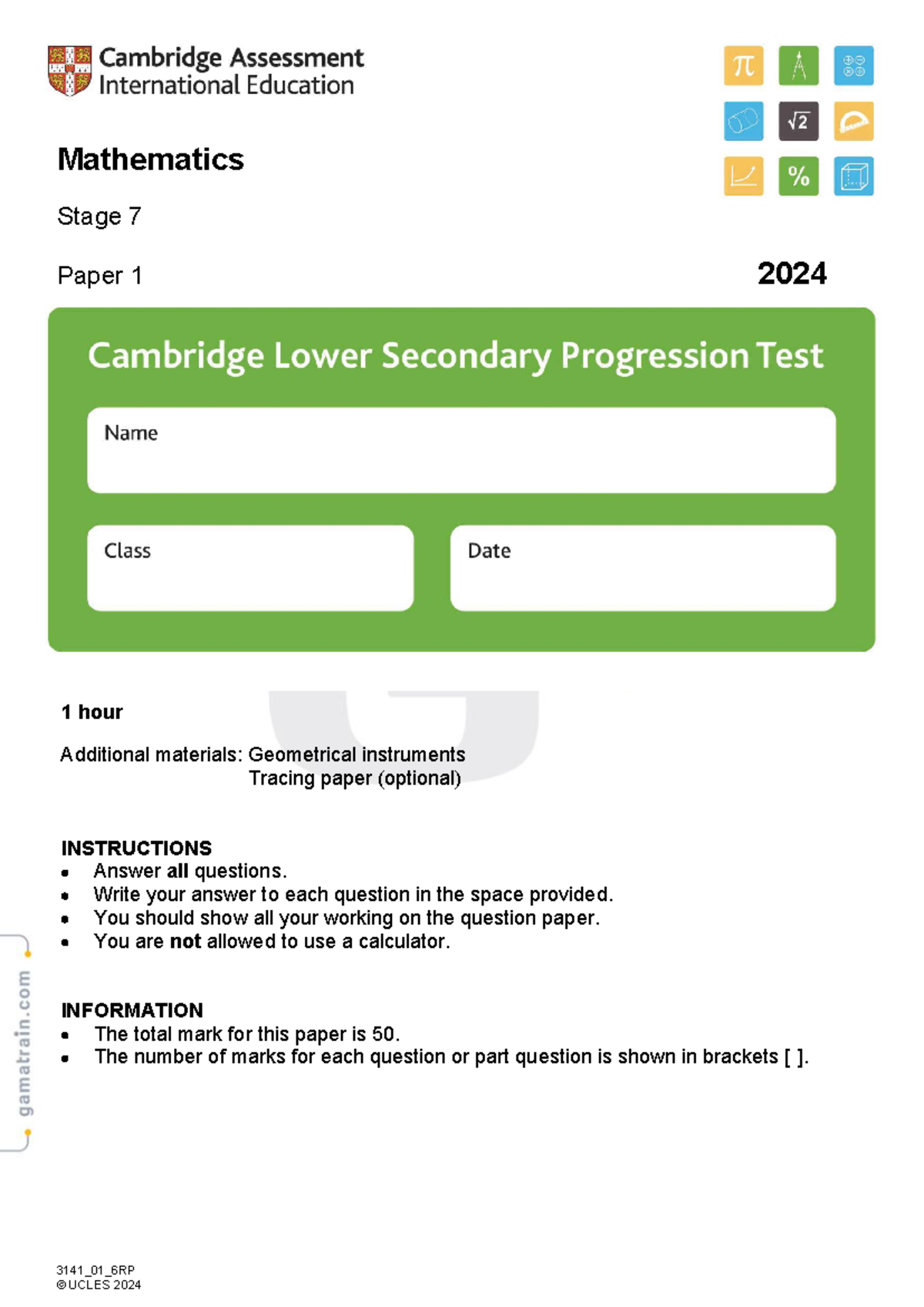 Mathematics Stage 7 Progression Test Paper 1 - 2024 - Studocu