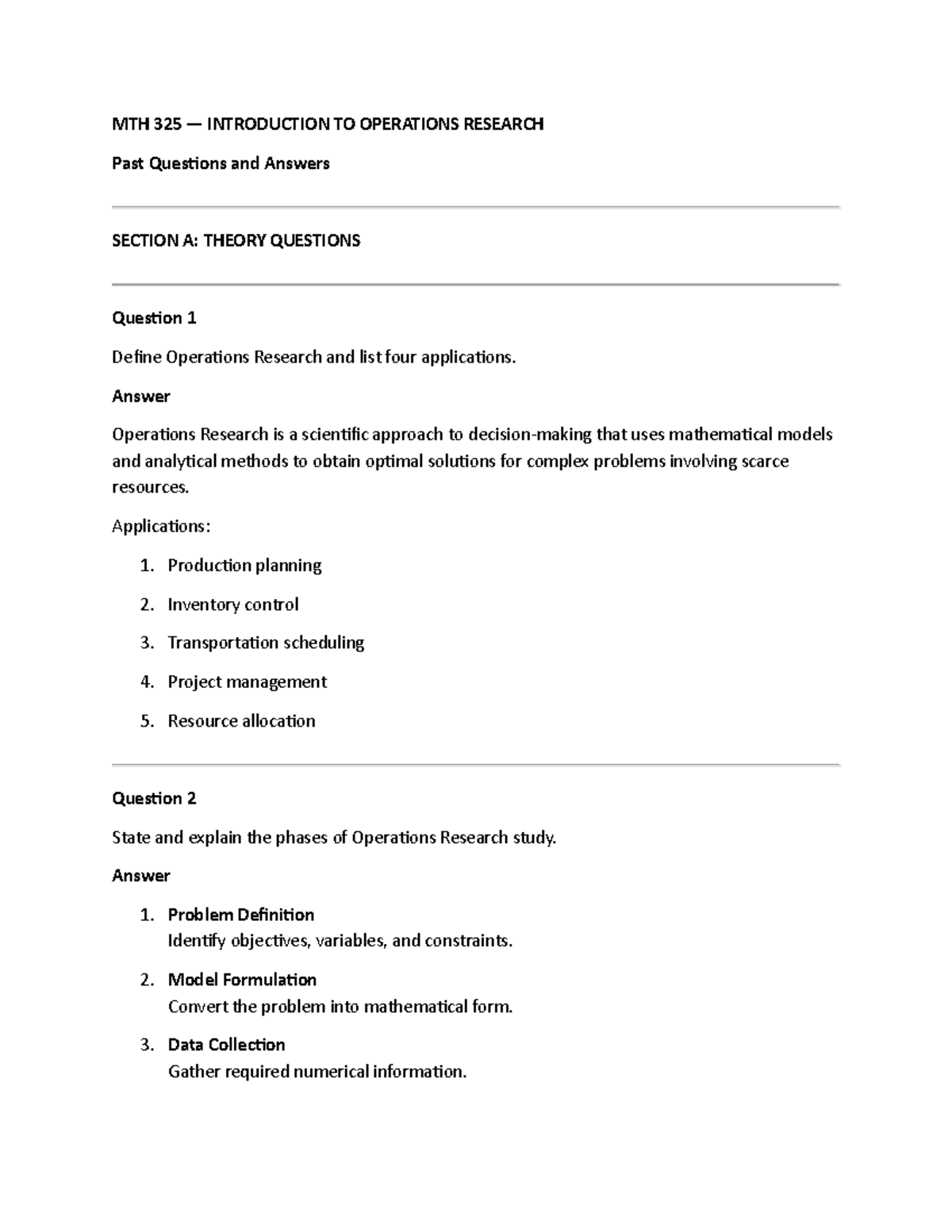 MTH 325 OPERATIONS RESEARCH Past Questions & Answers - Studocu