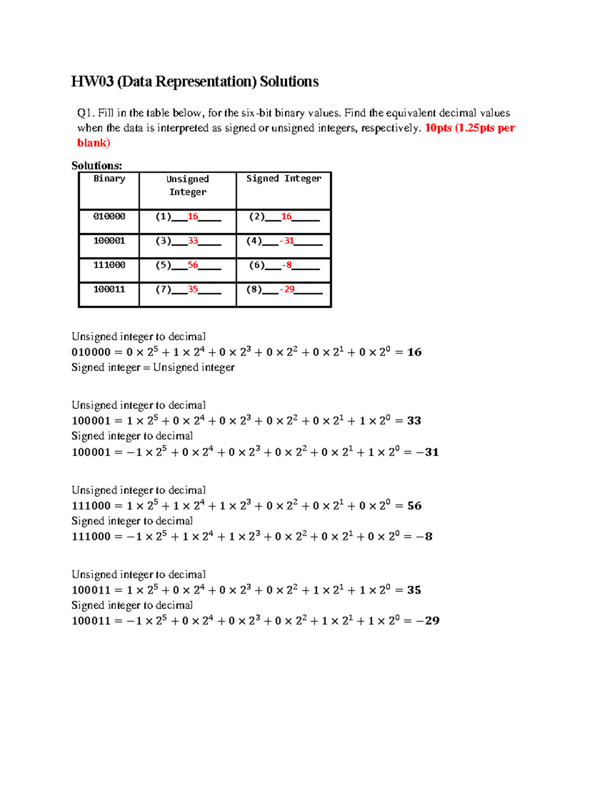 Cp E2200 HW03 (Data Representation) Solutions and Answers - Studocu