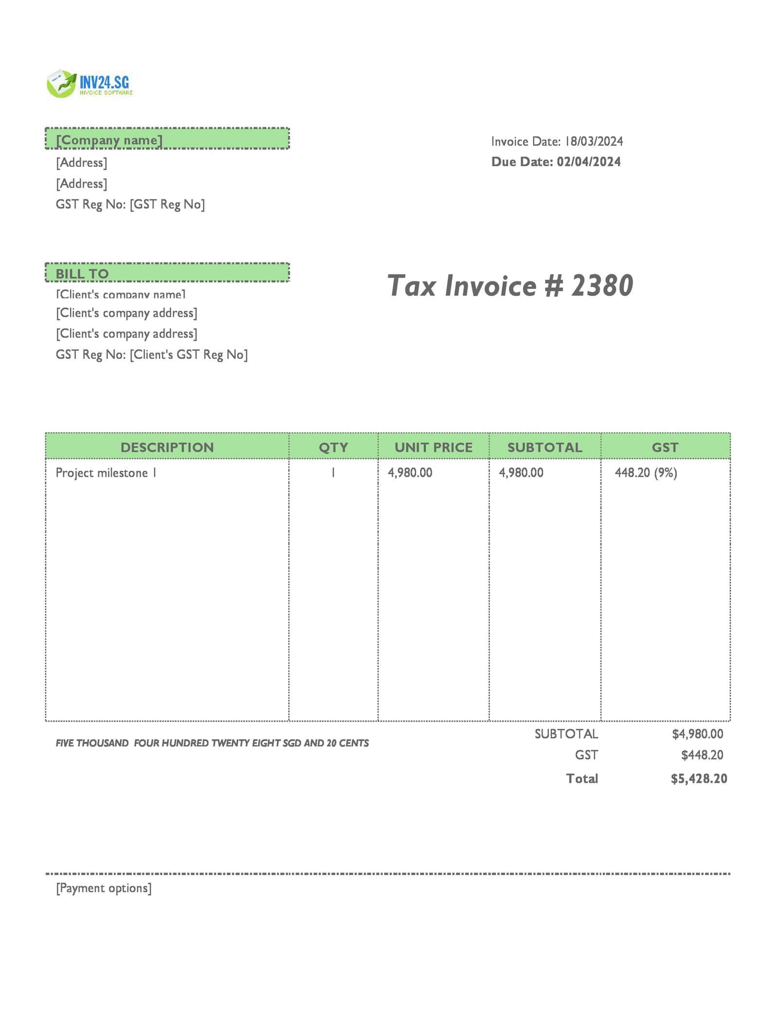 Progress Billing Invoice Template
