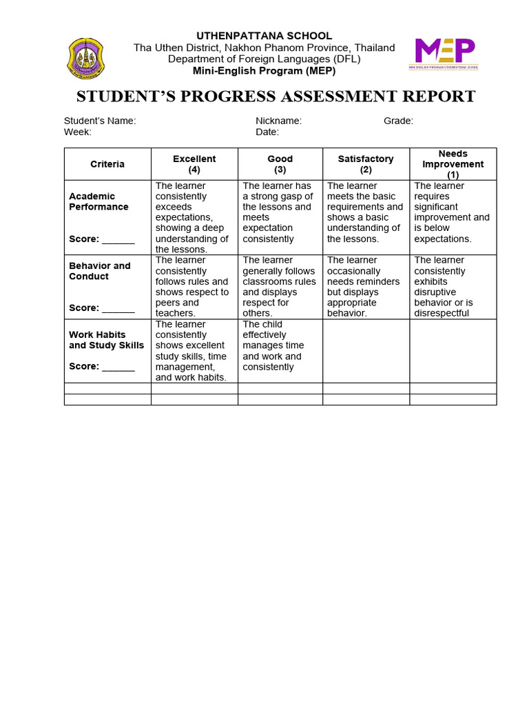 Educational Progress Report Template - Ablebionics
