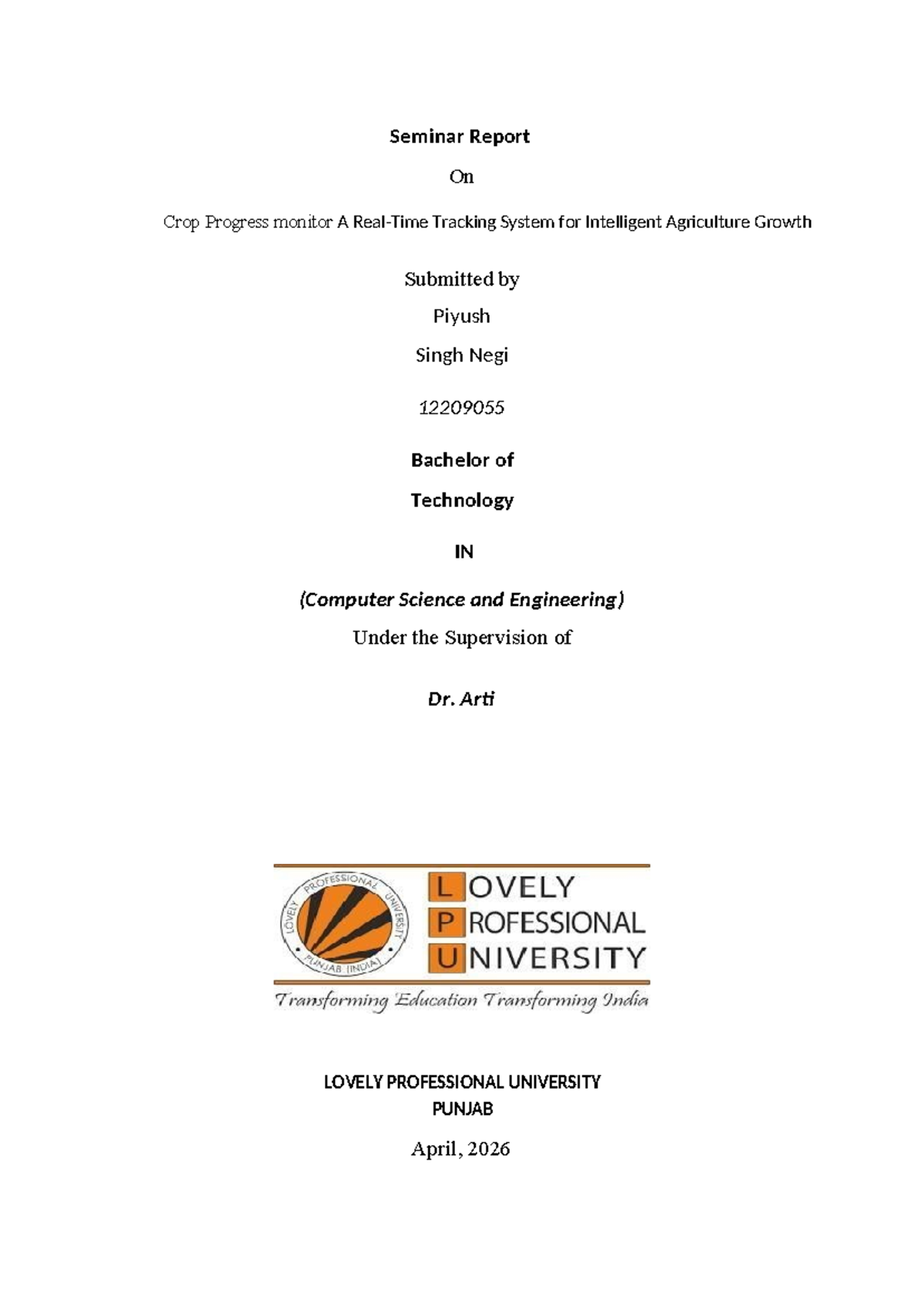 CSE435 Seminar Report: AI-Driven Crop Progress Monitoring System - Studocu