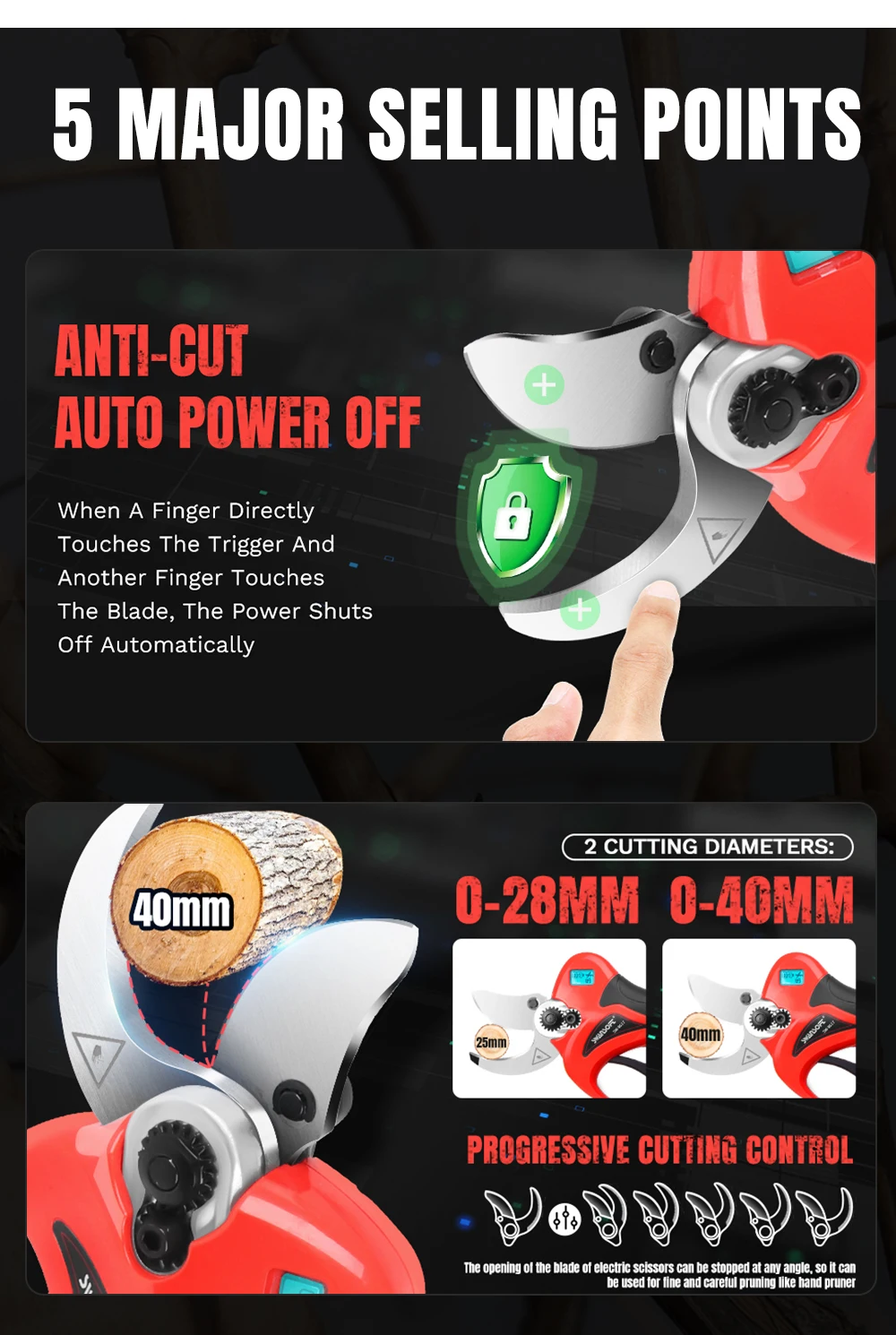 Swansoft Power Li-Battery Pruner Progressive Cutting Shears with Finger ...