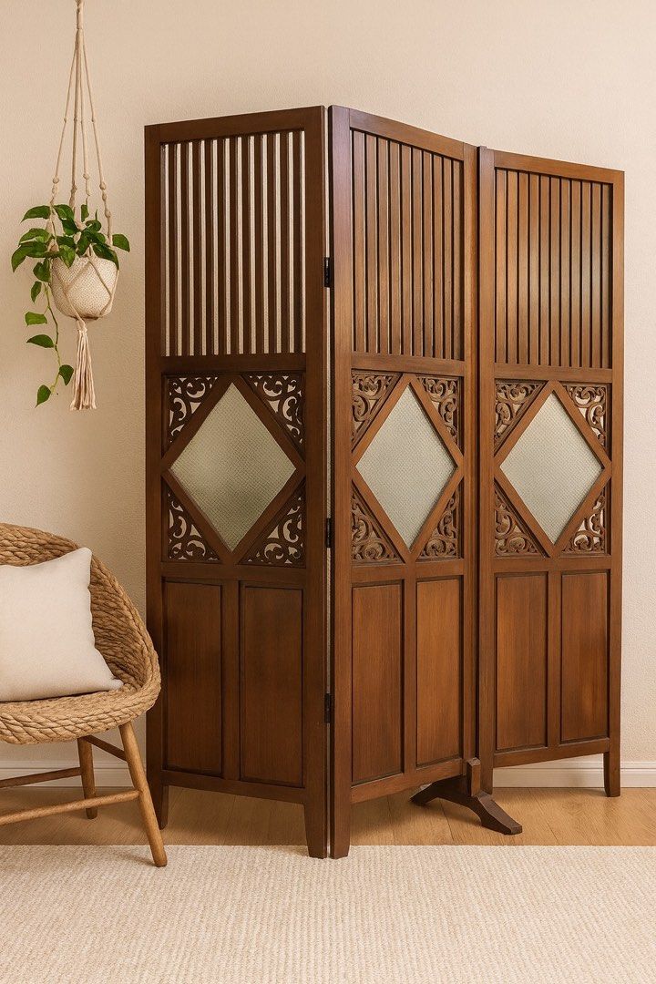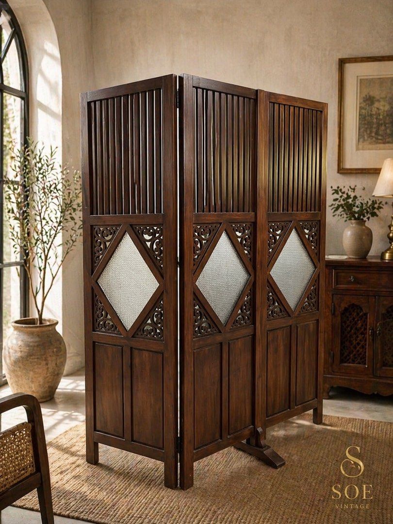 Vintage Solid TeakWood Folding Screen / Room Divider (4 Panels ...